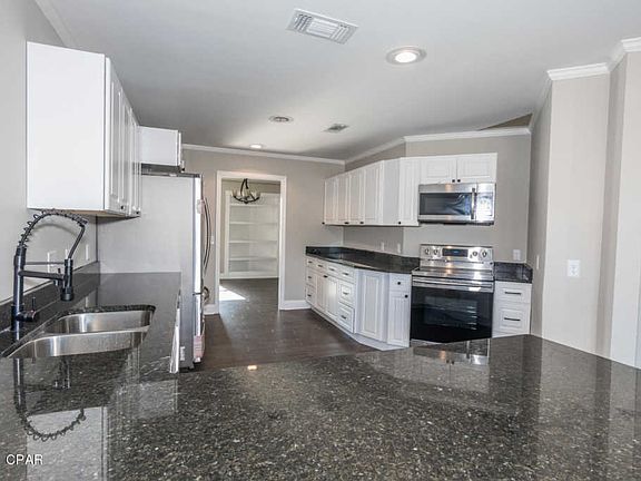 Updated and Upgraded Premier Estates Home with Handicap Accessibility! New Kitchen with Granite, stainless appliances, soft close cabinets, and breakfast bar. New roof, flooring, paint, fixtures, siding, and more. Living room has soaring ceilings, recessed lighting, and a fireplace. Main floor master bedroom with large bath and handicap accessible shower, and ramp access to backyard. Spacious guest bedrooms and a huge 4th Bedroom or multi-purpose room.Corner lot with fenced backyard, various fruit trees, a large enclosed patio, and concrete walkway.Convenient location near Lynn Haven, shopping, dining, medical care, and within 15 minutes to beaches, colleges, downtown PC, and Tyndall.Check out the Virtual Tour!