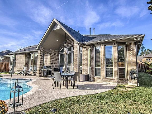 Here\'s one not to miss! Beautiful better than new designer dream house with a pool. Offering convenient location, highly rated schools, fantastic curb appeal, 1st floor bedrooms, 3 garages, an amazing gourmet kitchen and your own private pool. This home will check all your boxes. Upon entering the Rotunda you will see the quality selection of finishes and extras including Wood Beams, Stone Fireplace, Exotic Granite and Maple Cabinets. The primarily single story living offers Formal Dining, Wine Grotto, Study, & Family Room down and Game and Media up. Conveniently located in The Falls of Imperial Oaks with easy access to the Grand Parkway, Hardy Tollway, and The Woodlands. Conroe ISD