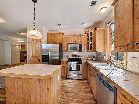 A premier condo in The Lodges II of Hiwan in North Evergreen! This first-floor end unit has no stairs and offers seclusion surrounded by lush landscaping and no sidewalk passing your front door. This 2 bedroom, 2 bath condo provides a comfortable open-concept layout with a moss rock gas fireplace that is not only functional but adds a touch of character to the room. The kitchen provides ample cabinet space and the island provides a central gathering point and extra workspace for meal preparation. The ensuite 5-piece bathroom includes a deep soaking tub and a walk-in closet in the primary bedroom offering a comfortable and private retreat within the condo. The laundry room is complete with a full-size washer and dryer and plenty of storage throughout the condo. The single-car detached garage is located close to the unit and a deeded designated parking space is located right in front. Enjoy a quiet place to live the life you love in the mountains without compromising the convenience of a community. Close proximity to restaurants and grocery stores, schools, recreation centers, and yoga classes makes daily life more convenient. The nearby access to local trails in Elk Meadow is perfect for hiking, biking, or simply taking a leisurely stroll, you have nature at your doorstep. If you are looking for a combination of privacy, convenience, and a comfortable mountain lifestyle, welcome to your new home!