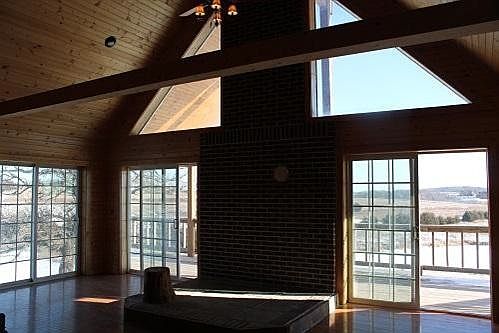 This is a hunters dream! This lodge style home sits on over 4 acres with a pond! There is a beautiful second story deck off the living room that looks over miles of landscapes.