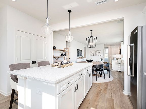 Welcome to the Meadow floorplan by Pulte Homes, nestled in the desirable Sagebriar community by Del Webb. Designed with effortless entertaining in mind, this thoughtfully crafted ranch-style home features an open-concept layout that seamlessly connects the gathering room, cafe, sunroom and gourmet kitchen. A spacious kitchen island takes center stage, complemented by stunning Arctic White quartz countertops, 42" white cabinetry, and built in stainless steel gas appliances-making it a chef's dream. A sun-filled day-lit sunroom offers the perfect spot for morning coffee or afternoon relaxation. Retreat to the Owner's Suite, where you'll find a tiled walk-in shower, dual vanity, and an enormous walk-in closet to meet all your storage needs. Additional highlights include an extended garage for added space for ample storage. The Sagebriar by Del Webb community is where lifestyle takes center stage. Residents enjoy TV streaming and internet included, plus convenient seasonal opening and closing of irrigation systems. The resort-style amenities include indoor and outdoor pools, a state-of-the-art fitness center, pickleball and bocce ball courts, and a clubhouse featuring social programming led by a full-time Lifestyle Director. A high-tech simulation room offers virtual golf and other sports, while miles of walking trails, pocket parks, and a dog park encourage an active, outdoor lifestyle. Sagebriar by Del Webb offers the perfect blend of tranquility, activity, and convenience.