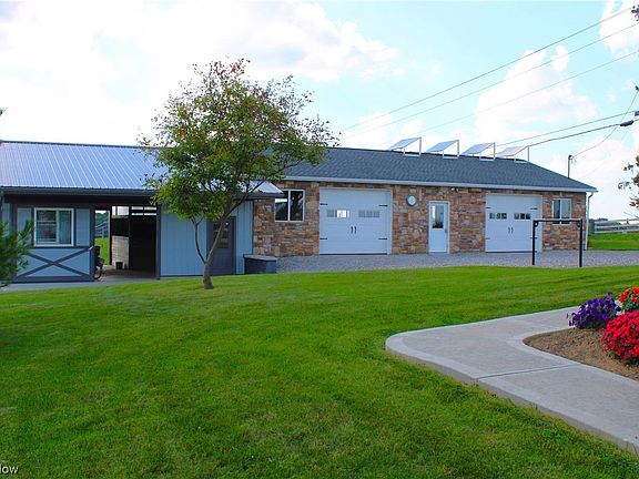 The basement level is spacious, fitted with a secondary kitchen ideal for canning, a designated wash area, and the advantage of a walkout exit. The outdoor space is perfect for hosting, with a recently upgraded deck that overlooks a vast backyard—ideal for camping and play. Those with animals will appreciate the 28’ x 30’ two-stall barn with an adjoining fenced pasture. The barn also features a section for dog kennels. For those seeking extra space, the 30’ x 52’ workshop offers ample garage space, suitable for buggies, vehicles, or even hosting church. It's equipped with two new garage doors and a complete solar system, complemented by a 6500-watt Honda inverter generator. This move-in-ready home has been meticulously maintained and boasts upgrades including a new kitchen, flooring, garage doors, sidewalks, and a rebuilt deck.