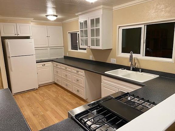 Tastefully updated and move in ready! This 2 bed 2 bath approximately 1100 sq. ft home has just been refreshed.Some of the many features include- laminate flooring, new carpet in both bedrooms, Milgard dual pane windows,crown molding,cedar flooring in bedroom closets,new Kitchen Aid gas range/oven,gas fireplace, community pool, coin op laundry, barbecue area.