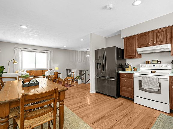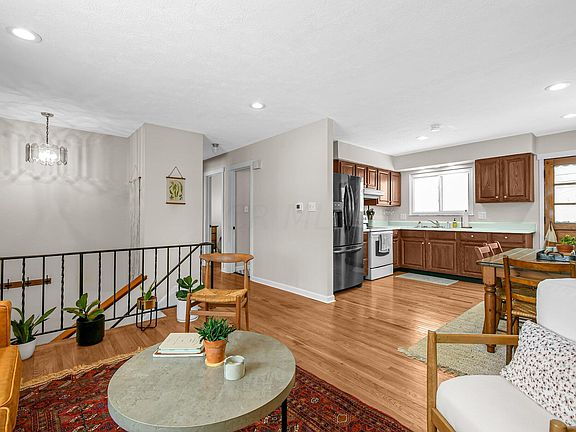 This home will impress you from the minute you arrive! All brick front highlights the exterior & beautiful wood floors greet you & extend throughout 1st floor. The Kitchen has raised panel cabinets & newer SS refrigerator with eating area that accesses the deck which has recently been painted & new sides added. Rear fenced yard has new wood privacy fence (2021). The 2 bathrooms have been renovated over the past 18 months & offer lots of extra charm! New lighting fixtures and switches throughout. The lower level offers a generous Family Rm. & 2 additional bedrooms that feature new carpeting 2021. The roof and gutters are approx 5-6 yrs old. HVAC system is approx 4 years old. 4th bedroom was converted to a den. Extra deep garage offers storage.