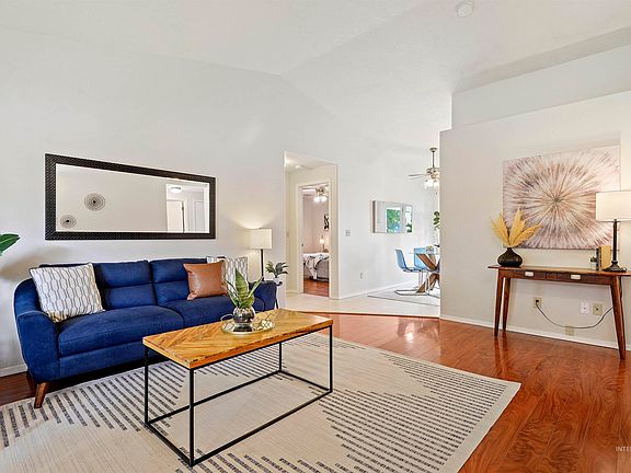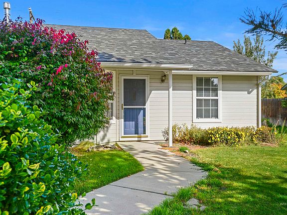 This darling, remodeled Columbia Village single level home was recently painted throughout the interior. New updates include bathroom finishes and a remodeled kitchen featuring quartz counters, an undermount sink, and a full tile backsplash. The light and bright living room boasts vaulted ceilings and a bay window. The primary suite features a walk-in closet, dual sinks, and a walk-in shower. North facing spacious backyard is fully fenced and features a pergola covered patio and a garden shed. Walking distance to community amenities including the Simplot Sports Complex, four community pools, a racquetball court, a volleyball court, the gym, parks, playgrounds, and top rated elementary and junior high schools. BTVAI.
