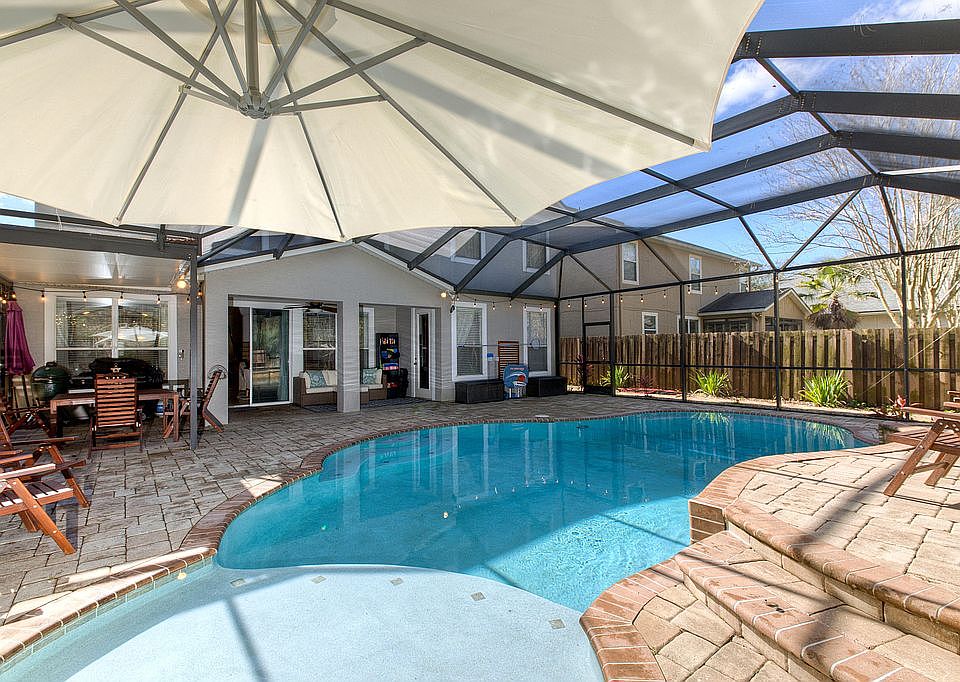 Golf Course Community Pool home featuring 5 Bedrooms 3.5 baths plus an additional 19''x14'' bonus room. Upgraded 42" Wood Cabinets a true chef''s kitchen with butler pantry and Eat-In area. Family Room has a recessed media center niche with surround sound system. Master Suite overlooks screened pool. Master bath includes his and hers vanities, separate shower & garden tub. Upstairs find 4 add''l bedrooms and 2 FULL bathrooms including Jack and Jill configuration. Fully Fenced yard. Newly Painted and Newer energy efficient HVAC systems. Top Rated Schools, NO CDD! Community Amenity Center includes Lap Pool, Children''s Pool, Fitness Center, Multipurpose Room, Basketball Courts, Tennis and Sports Field.