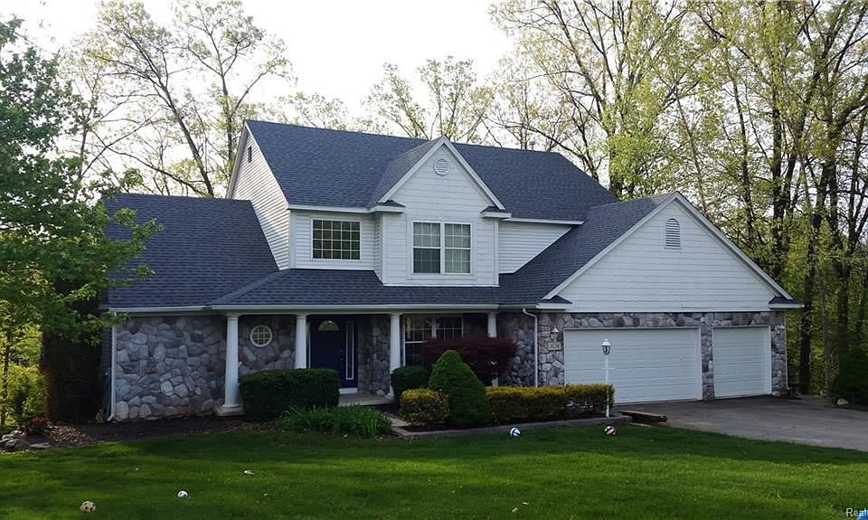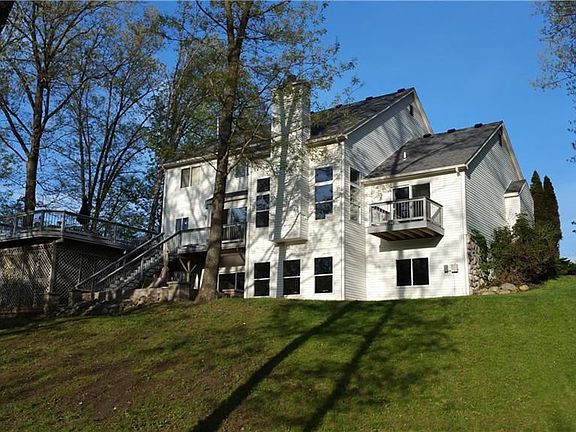 Beautiful setting in Saddlebrook, where you can enjoy the peaceful neigborhood at the end of the cul-de-sac, and direct access to the river in the backyard. With over 4300 sq ft of living space, this home features a large great room with valuted ceiling, natural fireplace, and hardwood floors throughout most of the first floor. Kitchen offers white cabinets with under cabinet lighting, tiled backsplash, corian counters and walk in pantry. Front office/den, or formal dining plus a 1st floor master suite with doorwall to private deck, bath w/double vanity, jetted tub, tiled shower, and large closet. 1st floor laundy w/new washer/dryer and udpated powder room. 4 add'l spacious bedrooms upstairs with a full bath. The finished walkout basement has an abundance of natural light and provides add'l living space, featuring a TV/workout room, or office for remote work, open rec area, plus a 3rd full bath. Outdoors you'll enjoy the large deck-perfect for outdoor dining and entertaining, plus a paver patio. The views are spectacular with lots of birds, deer, turkey, and wildlife. The river runs right behind the house and is super easy to drop a kayak into for summer time enjoyment. Convenient location to downtown, schools, and freeways.