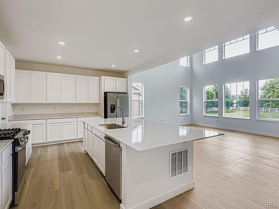 *Available NOW! Located in Riano Ridge, this stunning new Aspen 2-story features, 5 beds (4 upper and 1 main), 4 baths (3 upper & 1 main), laundry, great room, kitchen, unfinished Lookout basement for your future expansion, 2 + 1 car garages and more. Beautiful finishes and upgrades throughout including vinyl plank floors, stainless steel appliances, large kitchen island, slab Quartz counters, covered deck and more. The first floor of the main home is host to the open-concept living and dining space, highlighted by a 2-story great room that offers a wealth of natural light, while the second level is occupied by four bedrooms and a spacious loft. Lennar provides the latest in energy efficiency and state of the art technology with several fabulous floorplans to choose from. Close to dining, shopping, entertainment and other amenities.