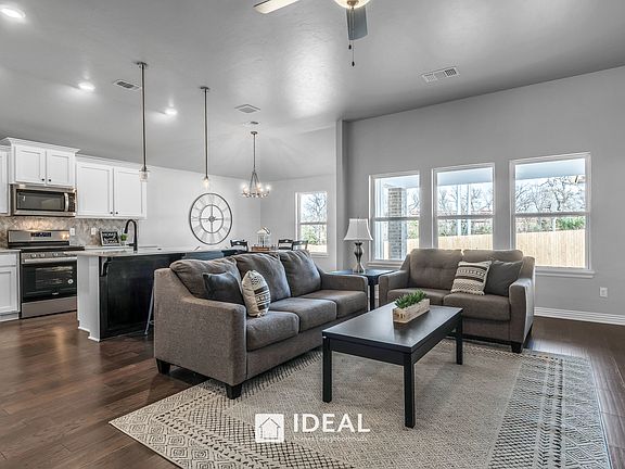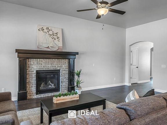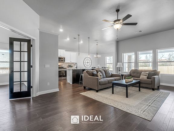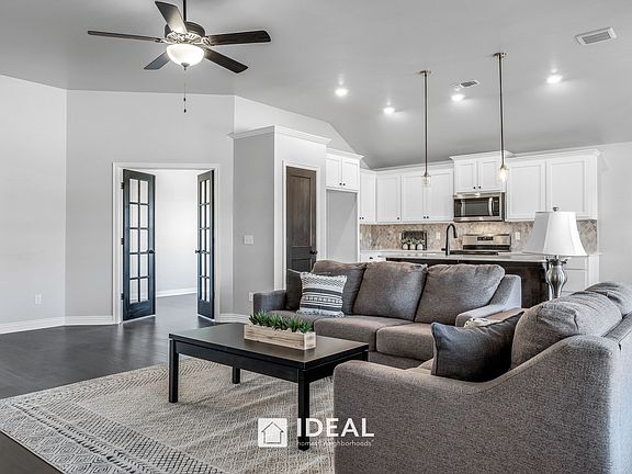 Built with some Farmhouse flare, this brand new three-bedroom home offers an open living/dining floor plan with study, indoor utility room, and outdoor covered patio. The kitchen features stainless steel appliances with a gas range, microwave, quartz countertops, tile backsplash, and breakfast bar. Easy-start gas fireplace in the living area. The home boasts a HERS score of 60, guaranteeing you low heating and cooling costs all year long. Full fencing and landscaping included.