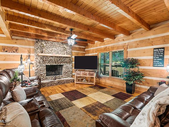 Currently used as a primary home, this beautiful and meticulously cared for 3 bedroom plus 2 bonus rooms, 3.5 bath, custom built, log cabin located in just minutes from downtown Pigeon Forge, will make the perfect investment property! Perfectly situated on .64 acres, this spacious log cabin is spread out over 3 levels and 4,262 square feet. Featuring 3 bedrooms, plus 2 bonus rooms, 3.5 bathrooms, a theater room and a game room. The cabin's wood floors, log chinking, exposed ceiling beams and large stacked stone fireplace add a rustic feel to this luxury cabin. The fully equipped kitchen boasts stainless appliances, granite countertops and plenty of cabinet space. A large breakfast bar separates the kitchen from the dining area, which leads to a fully enclosed sunroom. The cabin's primary