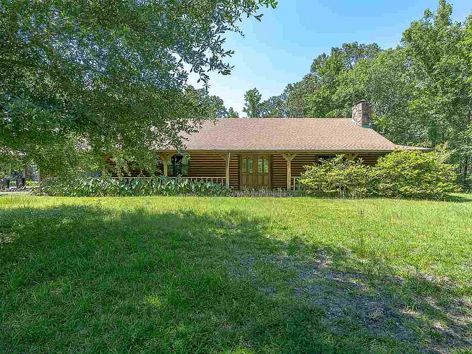 A beautiful custom log home, nestled on 7 private acres in the sought-after Sabine School District - a must-see if you love the rustic style and plenty of space! This log home features large rooms throughout, with a flowing floor plan that makes so much sense! The great room, anchored by a stone wood-burning fireplace, is magnificent, as is the spacious library/study/office, with walls of built-in bookshelves. This would also make a lovely music or hobby room, with a view of the natural beauty outside. The master is a true retreat, so large and roomy. Outside you'll find a workshop with a covered patio, and "the schoolhouse" storage. There is a fenced yard for pets and so much room to roam...make time to come see this East Texas rambling rustic retreat!