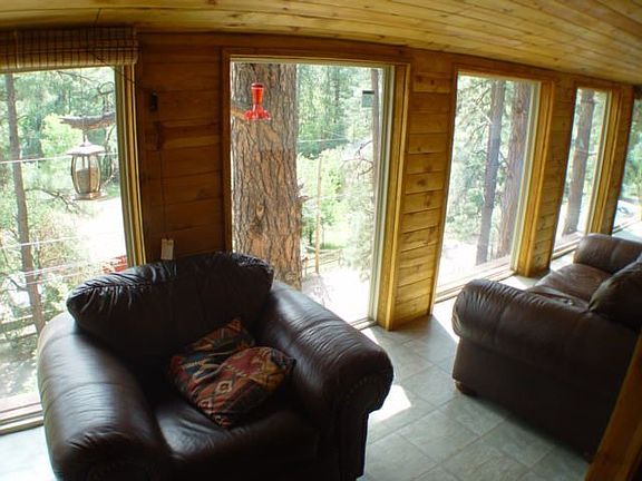 PRICE REDUCED $10,000!!! THIS HOME TOWERS ABOVE OTHERS AND IS AMID THE TALL PINES & RIGHT NEXT TO THE NATIONAL FOREST. ENJOY MAGNIFICENT VIEWS & BREEZES FROM THE FABULOUS SUN PORCH THAT IS LIKE A "WINDOW WONDERLAND". THE MULTIPLE DECK AREAS ALSO PROVIDE PLACES OF REST AND RELAXATION AMONG THE TREES TO ESCAPE THE COMMON ROUTINE. OTHER FEATURES INCLUDE: A BEAUTIFUL WOOD BURNING FIREPLACE WITH A HUGE SUPPLY OF FIREWOOD, NEW KITCHEN COUNTERTOPS, NEW RANGE & OVEN, NEW CERAMIC IN BATH, SEPARATE GUEST BEDROOM WITH BATH, STUDIO / WORKSHOP, BIG LAUNDRY ROOM, 2 STORAGE SHEDS AND MORE!!