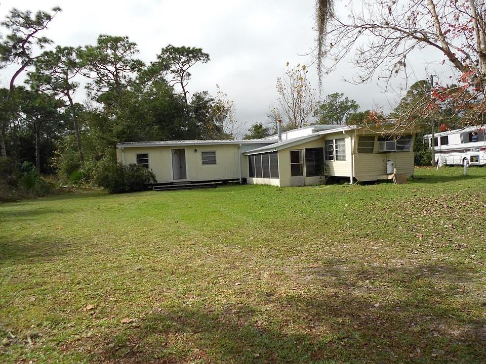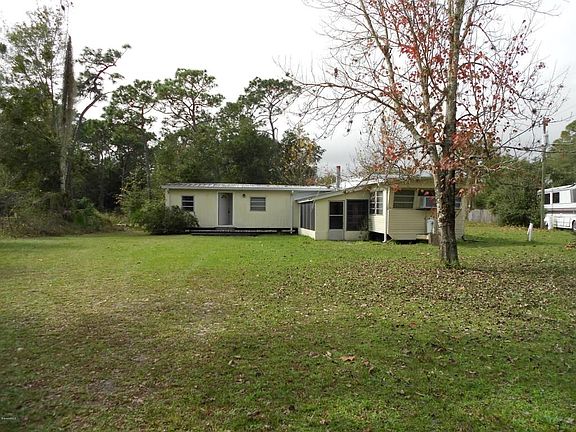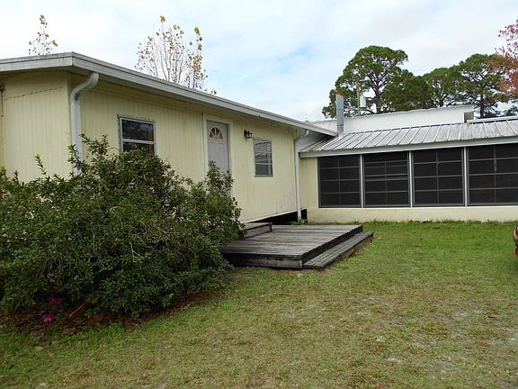 1.32 acres in Mims has older manufactured home. This 12x60 single wide has an 12x40 office trailer attached and welded at the frame (anchored also) to increase living space by adding another living area bathroom and bedroom to the single wides 2 bed, 1 bath. 97' deep well, Ben Franklin stove on patio for frosty mornings. 18 month old power pole carries 200 amps. Both parts of home and shed have their own electrical panel. '92 aluminum roof with 4'' insulation, 1974 septic system with 1000 gal. fiberglass tank. This lovely lot can be your peaceful retreat as a home away from home or your permanent residence. Septic and well in good working order, if you decide to move a new manufactured home into place, you are ready to go! 12 x 25 shed has electricity with washer and dryer hookups.