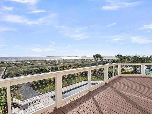 Magnificent architecturally designed Beach Front home on desirable St. Helena Sound! This premier custom-built coastal home is situated on a choice, beautifully landscaped lot and offers breathtaking views of the sound, beach & neighboring islands! A dramatic 2-story grand entrance foyer welcomes you that flows seamlessly into the spacious open-concept Great room with mahogany floors, tall windows & panoramic waterfront views! The large chef's kitchen features 2 center islands, custom floor to ceiling cabinets & top of the line appliances including a Sub-Zero refrigerator & Wolf gas cooktop. The Dining & Living areas are perfect for entertaining family & friends including a built in TV with cabinets & gas-log fireplace to enjoy Edisto year round! Relax & unwind on the wrap-aroundscreened porch and feel the cool seabreezes or step out onto the open deck and enjoy the sunshine! The main level also includes a sizable street side bedroom with built in bunks & exercise area, walk in laundry room, 1/2 bath and beachside en-suite bedroom, currently being used as a sitting room. From the main floor, take the 3 stop elevator or stairway to the upstairs where you'll be amazed by the luxurious and private Primary Suite! It features high ceilings, windows all around, walk in closet & adjoining sitting area opening out to your own private porch with fantastic views of St. Helena Sound & beautiful sunsets! The spa-like bathroom features double vanities, a soaking tub and inviting walk-in shower with multiple shower heads! Two additional en-suite guest bedrooms complete the upstairs area providing comfort & privacy for everyone! From the main level, there's a dry entrance to the underneath area with plenty of room for parking cars, boats & your Low-Speed Vehicle and also a large storage room that includes a whole house reverse osmosis system. The focal point of the ground level area is the in-ground heated pool with travertine patio overlooking the water & is sure to be a favorite! This is the perfect spot for lounging, sunning or taking a refreshing dip after a fun day at the beach! Additional amenities include an enclosed outside shower and an open air picnic area with flat-screen TV great for watching sports or movies outdoors! A Sonos sound system enhances the entertainment with a premium sound experience throughout the property. This immaculate superb quality home is being sold fully furnished with minor exceptions and is ready for your enjoyment! This fine home will make the perfect primary residence, 2nd home or waterfront rental property...This is a rare find... COME SEE FOR YOURSELF!