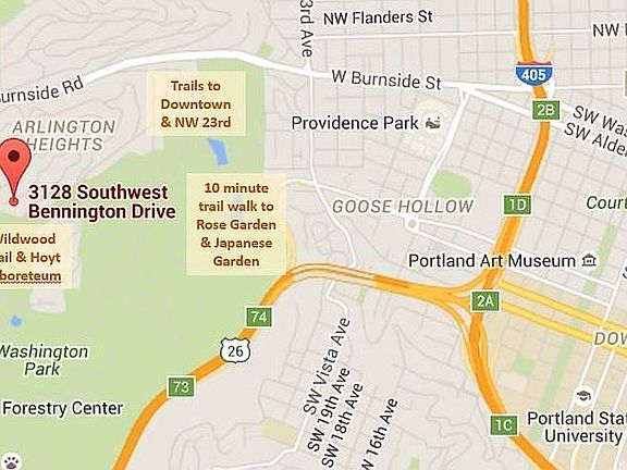 Serene, private setting next to Arboretum/Wildwood Trail, 5 min to downtown, 15 to Nike and OHSU. 2 story wall of windows, open floor plan, remodeled Chefs kitchen, plenty of natural light. Master retreat w/ private deck, fireplace, soak tub and forest views. Library w/ fireplace, fam. room, wine cellar, home office, bonus room, low maintenance grounds, dog run, oversized garage and 10 tall door, shop, lots of storage, concrete foundation