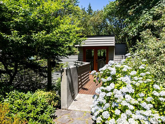 Urban Forest Home Overlooking Wildwood Trail! Experience the perfect blend of urban living and natural beauty in this stunning home overlooking Wildwood Trail. With a wall of windows, enjoy breathtaking forest views from the comfort of your living room. Step onto private decks for a serene outdoor escape without the hassle of extensive yard maintenance. This home features two spacious bedrooms and two beautifully remodeled bathrooms, offering modern comfort and style. Embrace a lifestyle of tranquility and convenience in this unique urban forest retreat. [Home Energy Score = 9. HES Report at https://rpt.greenbuildingregistry.com/hes/OR10229915]