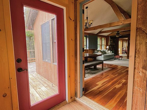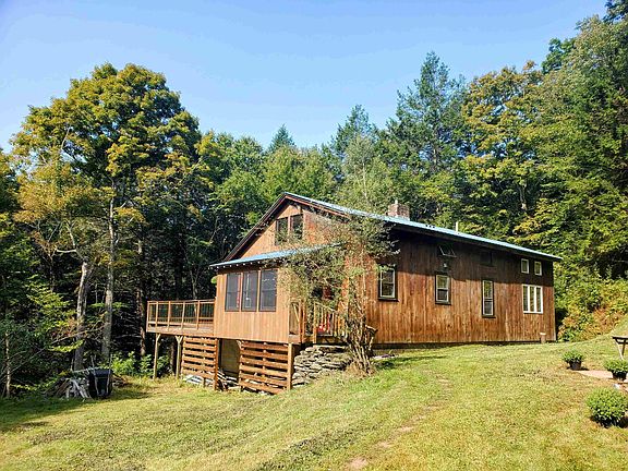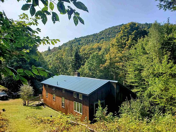 Nestled amidst the picturesque Vermont hills, this charming 1,200 sq. ft. home sits on a generous 8 acres of land, offering the perfect blend of rustic charm and modern comfort. With lovely mountain views and a serene brook winding below, this property provides an idyllic balance to the hustle and bustle of life. Sunlight streams through large windows while the private wrap-around deck invites relaxation or lively gatherings. The recently remodeled kitchen features elegant walnut countertops and a French countryside-inspired design, highlighted by the cherry hardwood floors. The home boasts a generous primary bedroom, a second bedroom, and a loft, providing ample space for an additional sleeping area or home office. Explore hiking trails on your 8-acre property or dip in the nearby swimming hole. Enjoy the ambiance of the wood stove while entertaining guests or relaxing by the fire or with a book in the loft on cool Vermont evenings, within easy driving distance of major cities like New York City, Hartford, and Boston, offering the perfect combination of natural beauty and accessibility. An all-wheel-drive vehicle is recommended for traveling the long, steep south-facing driveway.