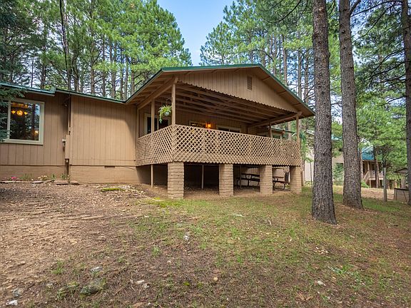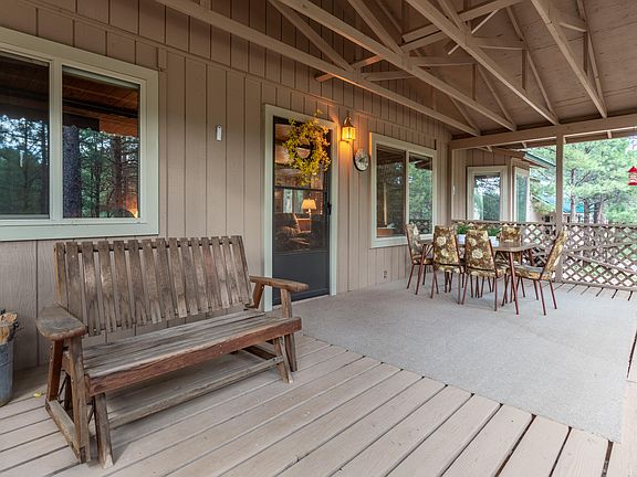 Nostalgic furnished home on the quiet road of Summer Loop. Elevated & Tucked away from the road the home offers views of Tall Ponderosa Pines & mature Spruces from the front deck, not to mention privacy. The back-half of the lot it is flat & offers plenty of space to entertain at your; Horse Shoe Pit, Fire Pit or Tree House. Or sit out on one of your THREE DECKS to enjoy all mother nature has to offer! Plus 2 Storage Sheds! Inside the home features an open concept w/the kitchen being in the center of all your living spaces. Upon Entry: Dining Area, Living Room (maybe a good game area), Kitchen & then off to the family room. The master suite is Spacious w/ en-suite half bathroom. Guest Bedroom has a nice sized bathroom down the hall featuring a walk in shower.