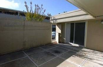 SINGLE ROW with beautiful park setting, crown molding and smooth ceilings, wood floors in hall and kitchen. AIR CONDITIIONING UNIT, mirrored closet doors, planation shutters in second bedroom, wonderful back patio with split Dutch door. Lots of guest parking, steps to car port and laundry