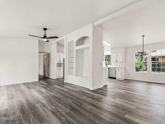 Don't miss out on this beautifully updated and recently renovated home in Kachina Village! The home features vinyl plank flooring through, quartz counter tops, and stainless steel appliances. The home also has a split floor plan with vaulted ceilings, formal dining room, and all new lighting and ceiling fans throughout. This property back up to National Forest and has access to trails right out your back gate!! The backyard is fully fenced and has large 8 foot gates on both sides of the home. Listing agent is a member of the selling LLC.