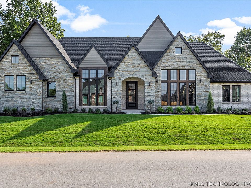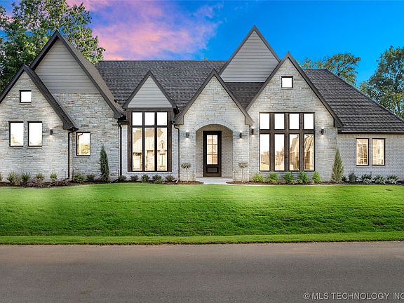 New construction located on a half acre lot in Stone Creek, a NEW private GATED neighborhood in Jenks! 4 beds, with ensuite baths, powder bath and outdoor pool bath. This home boasts high vaulted ceilings and windows in the living and dining areas. Master suite, guest suite and office located on first floor. Two beds up as well as large game room with extensive trim work and a multi use area at the top of the stairs. Expansive outdoor patio that backs up to wooded area and borders a creek. Privacy fence with mature trees along back of the property. Stone to ceiling fireplace. 24x48 tile throughout master bath, closet and utility. 7 inch white oak throughout downstairs. Quartz counters and other high end finishes! Agent related to seller.
