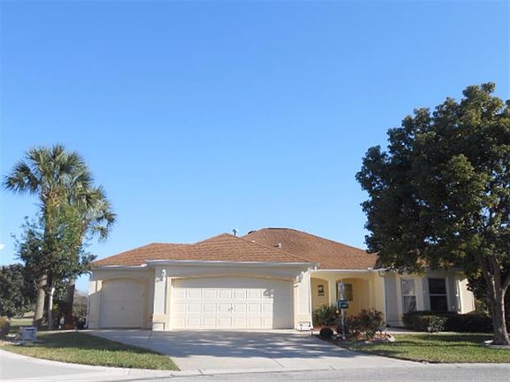 Beautiful designer block & stucco designer "Hillsborough" on gorgeous golf course lot. With the BOND PAID. Three bedrooms, 2 bathrooms, GOLF CART GARAGE. Built in spa w/mansard lanai. Quiet cul-de-sac, gas utilities, east facing lanai. Inside utility room w/storage & sink. Paved walkway, real hardwood floors. 20" tiles, high ceiling, gas fireplace, master walkin closets, upscale cherry cabinetry. Master bath w/2 sinks, marble shower. Home former model w/(1) year home warranty.