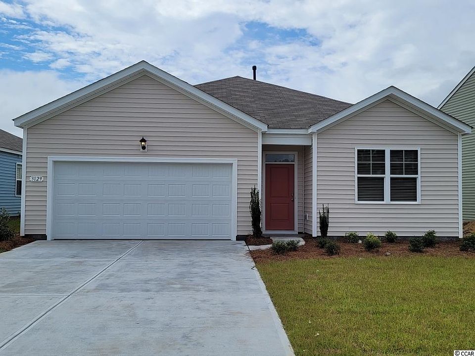 Perfect location- 10 minutes to Ocean Drive and Windy Hill Beaches. Our Cali plan is the perfect one level home with a beautiful, open concept living area for entertaining. The kitchen features granite countertops, an oversized island, 36" white painted cabinets, a walk-in pantry, and stainless Whirlpool appliances. The large owner's suite is tucked away at the back of the home, separated from the other bedrooms, with a double vanity and 5' walk-in shower in the private master bath. Laminate wood flooring throughout the living space! Spacious rear porch overlooking the pond adds additional outdoor living space. All bedrooms and family room are pre-wired for cable and ceiling fans. Ask about our Home Is Connected smart home package! *Photos are of a similar Cali floorplan. (Home and community information, including pricing, included features, terms, availability and amenities, are subject to change prior to sale at any time without notice or obligation. Square footages are approximate. Pictures, photographs, colors, features, and sizes are for illustration purposes only and will vary from the homes as built. Equal housing opportunity builder.)