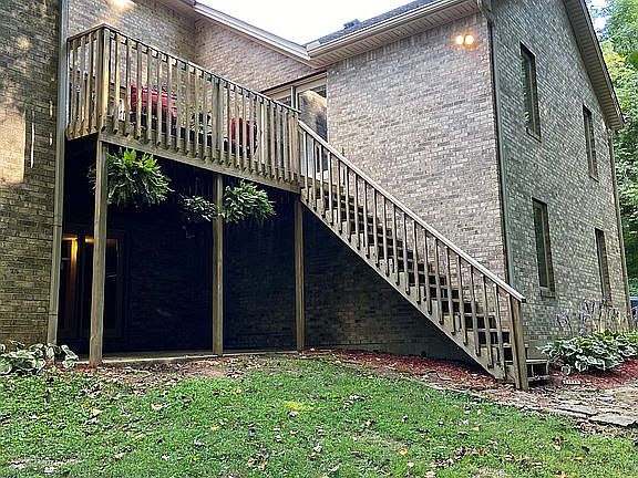 Brazil Lake Estates Ranch Home with Walk out recently finished Basement. Owner built home with an open concept and lots of natural lighting. The kitchen, dining room, and living room are built around an island and a two-sided fireplace. Home consists of 2,750 finished square ft. total, with 1,744 square ft. on main level. Home is very well maintained in an excellent secluded neighborhood with a friendly atmosphere everywhere you go. Lot has over 200 ft. of frontage. 1.06 acres of which back half is wooded and cannot be developed (very private). Includes large kitchen and living room, 4 bedroom (large master), multipurpose office, 2 bath (3rd bath roughed in, located 10 ft from water, sewage, and vent all exposed to the connections), 20 x 20 deck on main level with access from the kitchen, living room, and master bedroom. Shaded patio out the walk out basement. A second deck in the woods with a fire pit and benches is an added benefit. Additional benefits to this home include a roof that is only three years old and a heat pump outer unit that was replaced four years ago. Operational dog fence. Home is located in Greenville Elementary, Highland Hills Middle School, and Floyd Central High School's district.