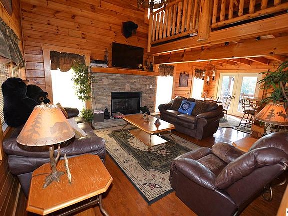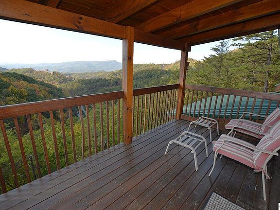 VIEWS THAT MUST BE SEEN TO BE BELIEVED!!! Beautiful and well appointed 2 bedrm/2 bath and currently on a well-established rental program. This cabin is as a vacation home or investment property, with enormous rental potential in a truly beautiful location. Incredible, one-of-a-kind mountain views of the Smoky's and especially of nearby Bluff Mountain from the large main level deck, as well as from your own private balcony on the 2nd loft level. Well-built log cabin, inside & out, & relatively easy access via a private drive to nearby County-maintained roads & services. Inside this cabin, you have a large great room with high, vaulted ceilings, a large masonry fireplace and open dining and kitchen area with black tile counter tops. The main level master bedroom has in-room whirlpool and private bath. There is also a 2nd bedroom with private bath on the upstairs level. The open game room area is in the loft with a private balcony to see those wonderful views! Only minutes to Pigeon Forge, Sevierville and Dollywood and nearby shopping or restaurants. A well built log cabin with one-of-a-kind views that truly are AMAZING - come see it for yourself today. Call Delores for rental information. Colonial Properties estimates...$37,000 per year and up for income.