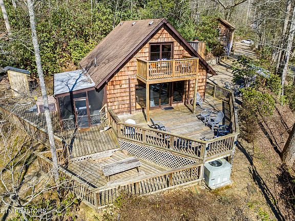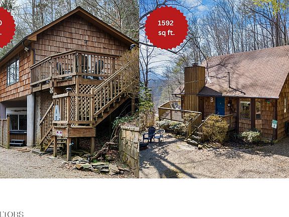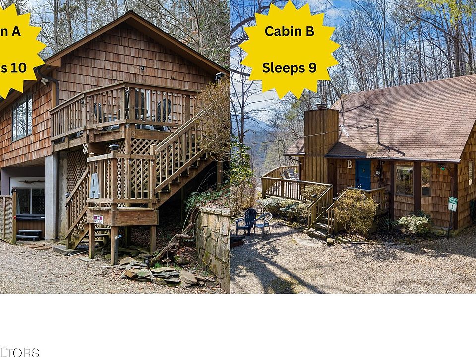 Two fully renovated, income-producing cabins in Pitman Center with creek frontage and stunning mountain views. The first cabin offers 3 beds, 3 baths, an open floor plan, a stone accent wall, and a modern kitchen. The lower level features two master suites with private patios. The second cabin has 3 beds, 2 baths, an updated kitchen, and large windows showcasing Mt. LeConte. Enjoy two levels of decking, a screened-in porch, and a peaceful brook bordering the property. A prime investment opportunity with strong rental potential. Schedule your showing today!