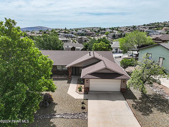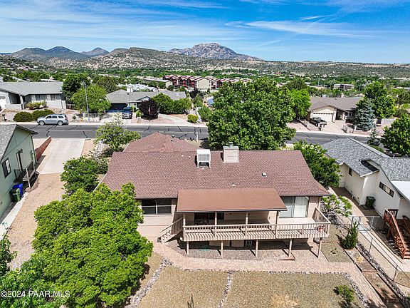 Meticulously Maintained Home In Montana Estates. All the expensive repairs and replacements have been completed. The aesthetics are up to you! Double door entry with security screens welcome you. The living room has a gas fireplace, opens to the dining area and kitchen, a functional and efficient space to create meals. Enjoy the views and natural light from the primary bedroom featuring two walk in closets. The primary bathroom includes dual vanities, walk in shower and a linen closet. Two guest bedrooms share the full guest bathroom. The covered back deck with gas bbq hookup will be your favorite spot for entertaining. Incredible SF Peaks, Mingus Mtn, and Granite Dells Views. Handy workshop under deck and fenced back yard. HOA amenities include Tennis, Trails, Picnic Area, Playground.