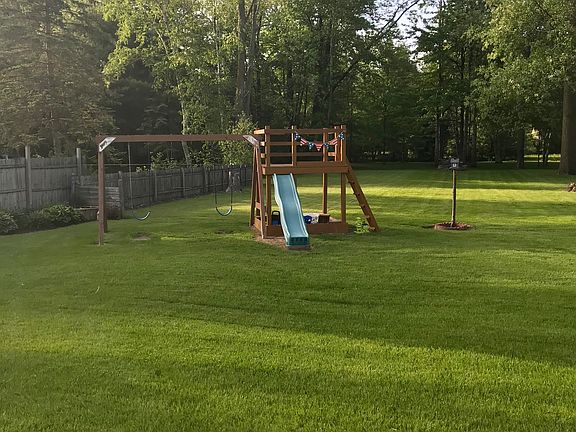 Beautifully maintained 3 bdrm, 1 1/2 bath home on .79 acre treed lot. Spacious kitchen/dining with oak cabinetry & hardwood floors. Family room with wood stove and sliding doors leading to deck and paver patio. Partially fenced yard with beautiful perennial beds and additional 18 x 26 garage.
