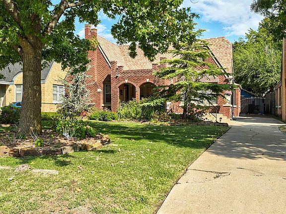 Stunning gem in the heart of Oklahoma City! Platted in 1909, Linwood has been home to some of OKCs most prominent citizens. This all-brick home features three bedrooms and one full bathroom. Original wood floors have been completely refinished to their original glory. Formal dining, original built-ins, breakfast nook, and plenty of kitchen storage. Frankoma Pottery fireplace. Hot water heater replaced in 2022, whole home and detached garage painted 2022, trim and any wood siding on North, East, West side of home replaced in 2020, sewer line from home to main line replaced with PVC in 2017, concrete patio poured in 2017, sprinkler system with new panel installed in backyard in 2024, wiring running from home to garage replaced and brought up to code in 2020. Security doors installed on both front and back doors. The backyard is perfect for entertaining. Close to highways, shopping, dining, and schools. Welcome home!