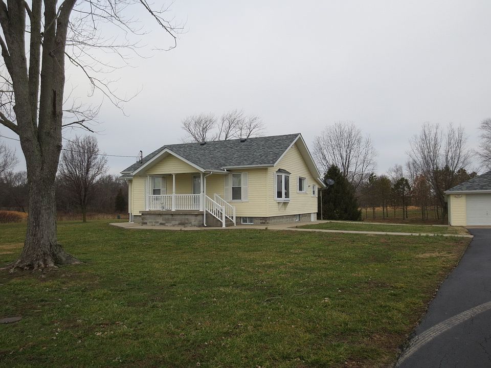 Estimated 1200 square footage. 2 bedrooms 2 full bathrooms. 3 walk in closets. Dry unfinished full basement. 2 barns with electric and water. 2 very stocked ponds. 10 minutes from Rend Lake. Roof is 1 year old. Sealed circle asphalt drive 1 year ago. A little over 19 acres in pasture now.