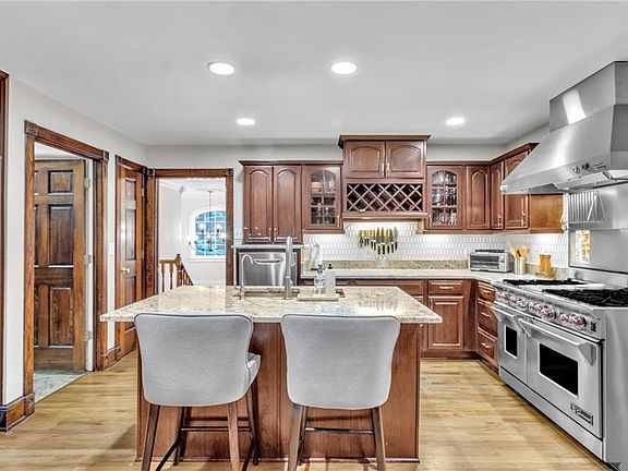 Stunning wood burning fireplaceHigh ceilingsLarge walk-in pantryGleaming hardwood flooringCherry cabinetsElegant trim workSub-zero refrigerator