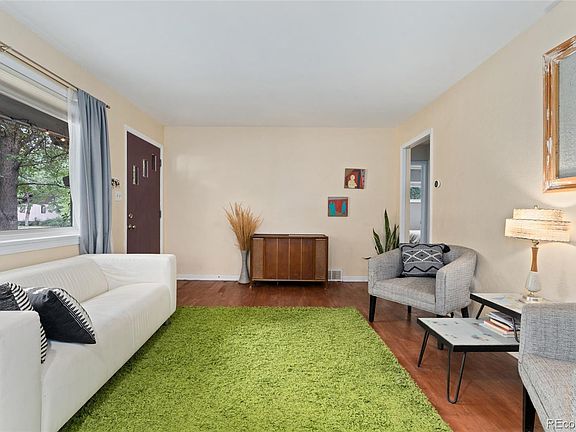 This updated brick ranch charmer is tucked away in a peaceful, walkable Englewood neighborhood just moments from parks, groceries, the Gothic Theater, trendy restaurants, and everyday essentials. The home blends timeless character with thoughtful updates, featuring an open, light-filled living room, a dining nook, and a cheerful kitchen with white cabinetry, stainless steel appliances, a gas range, and granite countertops. Hardwood floors extend throughout the main level, including all three bedrooms, which share a stylishly updated full bath. Downstairs, the finished basement offers a spacious family room with a cozy fireplace and built-in shelving, two additional bedrooms (one with a non-conforming window), a second bathroom, and a laundry area with generous storage. The backyard is a private, terraced retreat like no other—lushly landscaped and framed by towering spruce trees, it offers both tranquility and charm. A small hot tub tucked beneath the trees makes for a magical place to unwind, often visited by local owls, and a garden studio provides the perfect space for working from home, yoga, or creative pursuits. A charming bridge leads over the Historic Smith Ditch carrying clear, shallow water through the backyard from April through October. The canal was dug in the 1860s and listed on the National Register of Historic Places. Only three homes enjoy this unique feature, and a cozy creekside seating area invites quiet moments beside the water, and the expansive brick patio is ideal for entertaining. There’s plenty of space to add a detached garage if desired. Harvard Park is just four blocks away, with breathtaking 180° mountain views—an evening favorite to gather with dogs & blankets to watch the sun set over the Front Range. With 27 bird species spotted in the yard and a location just four walkable blocks from downtown Englewood’s 20+ restaurants, cafés, and shops, this home offers an unbeatable blend of nature, history, and urban convenience.