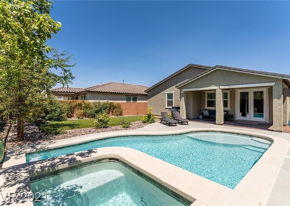 Model perfect! Spectacular and stylish single story POOL home in gated Inspired neighborhood. Tucked away at the end of a cul-de-sac, this darling property has amazing upgrades, including luxury vinyl plank flooring, custom fireplace wall with shiplap and brick accents, and chef's kitchen with white kitchen cabinets and oversized island. Primary retreat is separate from other bedrooms and features dual walk in closets and spa like bath. Rear yard is your private oasis with refreshing pool and spa, designer landscaping, and synthetic grass area. This home is truly a gem in the desert.