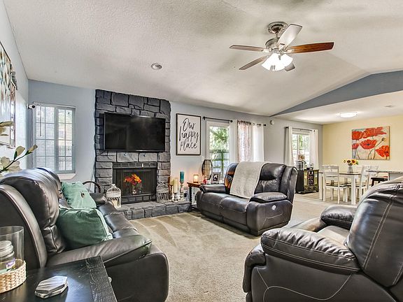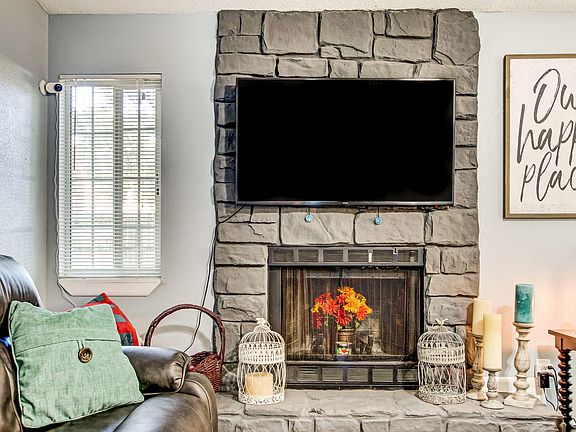 - Fireplace features: Wood Burning Fireplace, 1 Fireplace, Stone Fireplace
