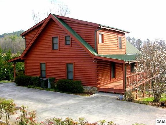 Super true log cabin, super location, super view. Pride of ownership is evident is this beautiful Wears Valley cabin. Easy access, plenty of parking and nice views of Cove Mountain and Round Top Mountain. Two bedrooms on the main and huge master suite on the upper level. Gleaming hardwood floors on the main and upper level. Lower level game room is huge and could be multi purpose. Continue to use as game room, convert to a in-law suite, numerous possibilities. Lower level also has a bonus room and spacious laundry. Very large concrete parking pad could be space for a garage. If you are looking for a permanent home, vacation home or investment cabin this one is worth a look.
