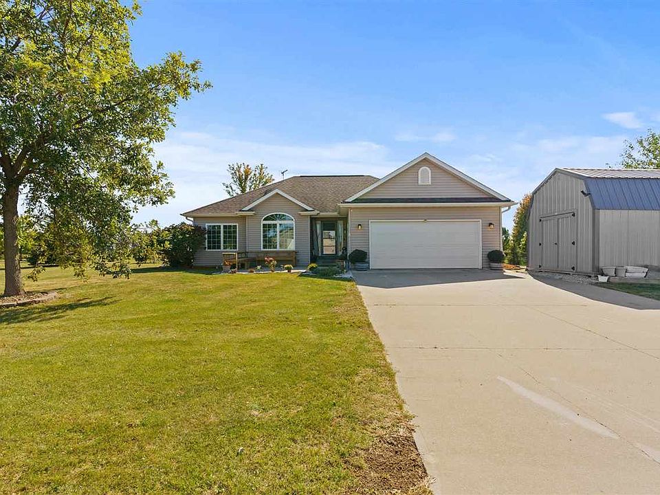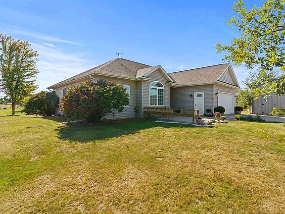 Spacious ranch home nestled on a private cul-de-sac in a rural country subdivision offering beautiful private views! This sprawling 3-bedroom one-owner home offers great space and a nice backyard with plenty of space to play. A warm and inviting great room greets you when you enter through the front door. The spacious eat-in kitchen boasts an abundance of cabinet storage, pantry, a large breakfast bar with seating, and newer kitchen appliances. Functional open floor plan throughout the great room, dining area, and kitchen. The main level features 3 bedrooms including the primary bedroom with a large walk-in closet and private bathroom. Most of the interior of the home has been freshly painted. Newer LVP floors in the kitchen, dining area, and hallway, and newer carpet in the great room. Conveniently located 1st floor laundry with the washer/dryer negotiable. Huge walkout lower level features a family room, rec area/workout room, 4th non-conforming bedroom, and full bathroom. Enjoy relaxing on the deck while soaking in the country and pond views. Newer electric water heater and two new sliding glass patio doors. This property has two garden sheds that will stay!