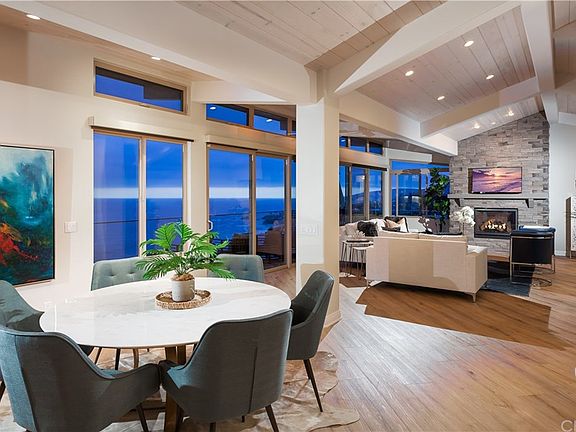Exquisitely positioned on the "Coast Royal" bluff 31293 Ceanothus offers some of the most iconic coastline views imaginable, soaking in 180 degree views of the shoreline to the north, city lights & beyond, breathtaking sunsets, Catalina Isle as a backdrop, serene coastal bluffs meeting the waters edge to the south, reef outcrops, splashing whitewater and the soothing sounds of crashing waves.The impressive architecturally redesigned , remodeled and refreshed turn key home encompasses 5 en-suite beds/5 full & 2 1/2 bath with over 4300" of indoor living space that flows seamlessly with approximately 1600sf of additional decks that deliver the ultimate in outdoor living spaces.Every level offers incredible ocean vistas, a floor plan offering generous living spaces that allows for generational living at its best and would fulfill all your family needs ,from the lower living quarters and separate living room,Office, massage/wine room, the well appointed chefs kitchen with a full walk in pantry, a main living area with no stairs from the street that offers direct garage access.The master suite and bath deliver spell bounding views.The large street to street lot is complimented with plenty of parking for up to 6 cars, option for an ADU, private tranquil gardens with several view points to soak in the beauty that is Laguna Beach, set this property apart. Located within walking distance to several of the areas best beaches,The Montage & Ranch resorts along with fine dining options.