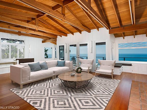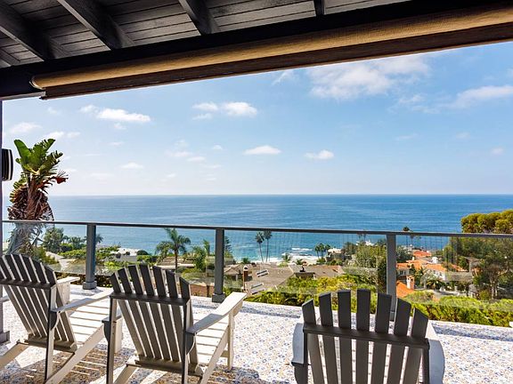 Tucked away in one of Laguna's most sought-after neighborhoods, this exceptional home blends modern elegance with timeless beachside charm. Just moments from pristine sands, world-class restaurants and the vibrant local arts scene, it offers the quintessential Southern California lifestyle. Set on a tranquil street with panoramic ocean views, the home greets you with an airy, open floor plan featuring soaring ceilings, rich hardwood floors and expansive windows that invite in the light and sea breeze. The living room, framed by floor-to-ceiling glass and anchored by a fireplace, offers an unforgettable vantage point for watching the sun dip into the Pacific. The beautifully designed kitchen boasts ample cabinetry and flows seamlessly into the dining area - perfect for entertaining or casual meals at home. Large decks extend the living space outdoors, ideal for dining under the stars, enjoying a morning coffee or unwinding with a sunset drink. The primary suite is a luxurious retreat, featuring a private balcony with ocean views, a spa-inspired en-suite bath with high-end finishes and a spacious walk-in closet. Additional bedrooms are equally inviting - bright, versatile and ideal for guests, creative workspaces or a growing family. Contemporary bathrooms throughout the home offer refined design and thoughtful details, echoing the home's overall sophistication. Living at 31293 Holly Drive means more than just a beautiful home - it's a front-row seat to everything Laguna Beach has to offer, from scenic hiking trails and iconic beaches to charming boutiques, fine dining and a thriving cultural scene. Schedule your private tour today and discover where luxury living meets coastal cool. Dishwasher, Gas Stove, Oven, Refrigerator, Hardwood, Dining Room, Laundry Room, Living Room, Primary Bath, Primary Bedroom, Fireplace, Floor To Ceiling Windows, Scenic View, Washer Dryer Hookups, Deck / Balcony, Fence, Ceramic Tile, Air Conditioning, Garage, Skylights, Sprinkler System & Pet Friendly.