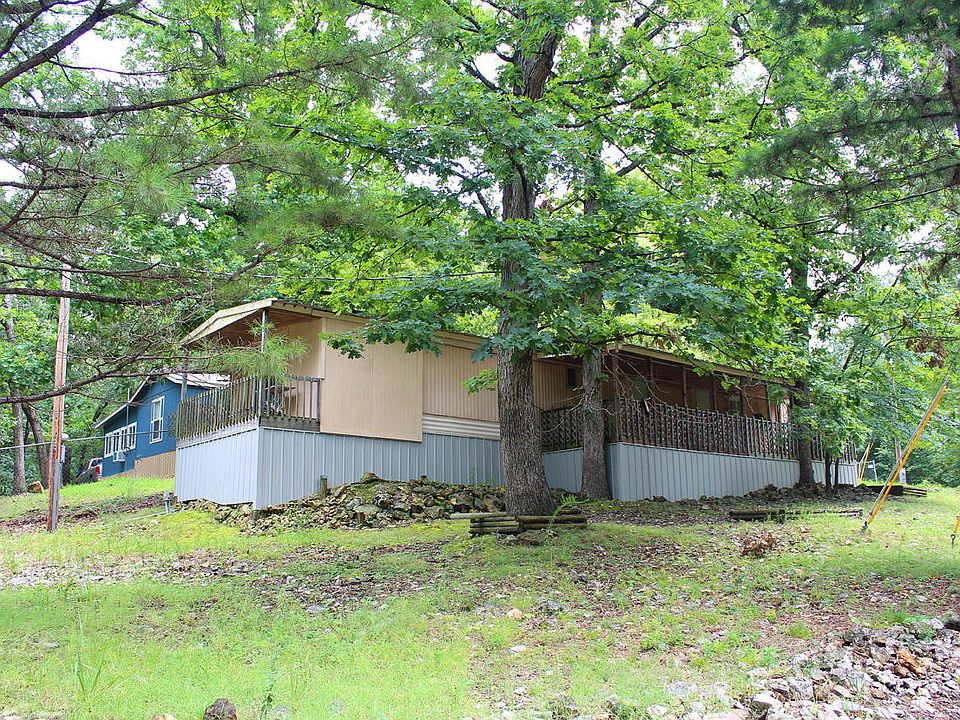 Perfect weekender at Grand Lake! This home is located in a gated community with low HOA Dues, and so many amenities! Unique interiors give this home a cabin like feel. Spacious kitchen with lots of storage. Large living room with walkout to back deck. One large bedroom, could be made into 2 separate bedrooms if needed. Full bath with tub. Enjoy the seasonal water views from the large deck that runs the full length of home. Bonus vacant lot adjacent to home will sell with property. Neighborhood amenities include gated entrance, pool, boat ramp, park, club house, fishing day dock for owners and paved roads throughout neighborhood.