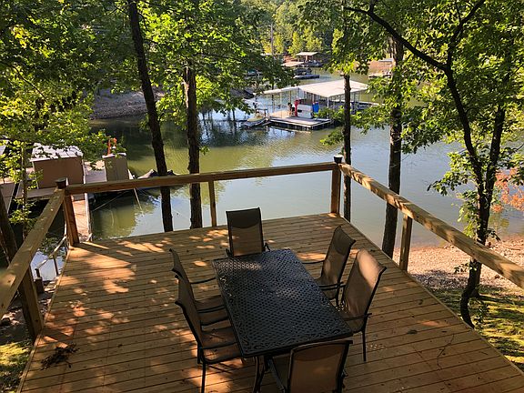 Waterfront with 2 slip dock. Updated kitchen and bath. Large deck overlooking cove.
