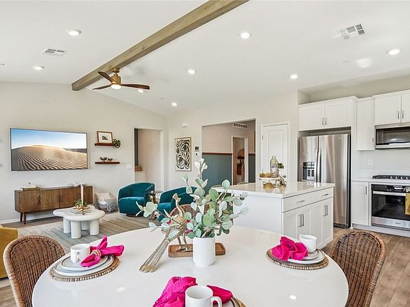 NEW CONSTRUCTION and QUICK MOVE-IN in Winchester - SOLAR INCLUDED and NO HOA!! - This 1,576-square foot single-story home [Corner Lot] with California Ranch façade and a LARGE BACK YARD space has 3 bedrooms and 2 full bathrooms. The Island kitchen with island eating area has Bianco Tiza QUARTZ counters, built-in stainless-steel appliances and a pantry closet. The interior comes complete with Crisp White shaker-style cabinetry throughout, lots of included recessed lighting, and upgraded flooring with plush carpet in bedrooms, closets, and stairs, and vinyl in main living areas. The primary bedroom has an ensuite bathroom with double sinks and a walk-in closet, and there are 2 additional bedrooms, a full bathroom, and laundry room. There is also a direct-access 2-car garage PRE-PLUMBED for an electric car! This truly modern home has all the Smart Home features you would expect and is LANDSCAPED and IRRIGATED in the front yard. The Juniper community is situated close to park and freeway access. We anticipate an October move-in and we can't wait to welcome you Home!!