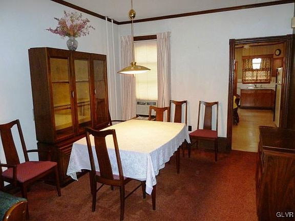 The covered porch of this lovely Allentown row home invites you to enter it's large living room and spacious dining room area. Interior of home is a combination of white walls and rich dark paneling throughout. The large eat-in kitchen provides spacious counter and cabinet space. Back door takes you to a fenced back yard & patio plus 1 car garage with alley access. Second floor has 3 bedrooms, and a bath. Take the steps to the third floor to find another spacious bedroom area occupying the entire floor. Carpeted throughout. As an extra, the full size dry basement provides a great deal of expandable space in which is your well lit laundry area plus an additional toilet and shower. Exterior Bilco door to back yard. This home is ready for your enjoyment. All of this and only a few blocks from West End Park.
