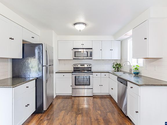 Beautifully updated home with modern amenities. Remodeled bathroom (2021), new heat pump, furnace, and water heater. Newly re-insulated for energy efficiency. Stylish kitchen features granite counters, tile backsplash, and stainless appliances. Roof replaced in 2015. Enjoy the covered back patio, vaulted ceilings, and spacious living room. Vinyl windows throughout ensure ample natural light.