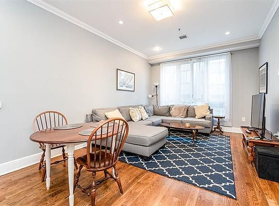 Close to path! Move into this luxurious and spacious downtown Hoboken 2 bedroom 2 bathroom rental located in the historic Jefferson Trust building. This is not your average cookie cutter Hoboken layout, this unit has generous sized rooms with high end features and a great flow. Features: over 1100 square feet of living space, secure elevator building, hardwood floors, high ceilings, crown molding, elegant light fixtures, modern kitchen with granite counters and stainless steel appliances, breakfast bar, open living / dining area, 2 large bedrooms with closets, bedroom 1 is (16' x 11') & the master bedroom (11' x 17') has its own walk in closet, private bathroom, separate full bathroom, private washer / dryer, located walking distance to the Hoboken Path, restaurants, boutiques, parks, pubs, and public transportation. Tenant pays their own utilities. Parking available for an additional $300 per month for indoor attached garage 1 small pet allowed with $250 pet fee and additional $25 a month.