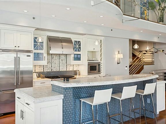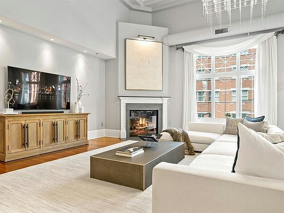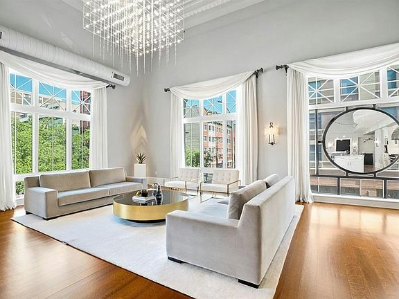Stunning, one-of-a-kind corner loft at the Historic Jefferson Trust Bank building. Built in 1909 and placed on the National Register of Historic Places in 1986, this truly unique space has soaring 21 foot ceilings, 3180 SF of living space, 2 bedrooms plus den, 2.5 bathrooms, private keyed elevator access into the home and garage parking for one car. Designed for entertaining, the five 9.5 foot high windows with northern and western exposures saturate the great room with natural light. The original egg and dart plaster moldings and spectacular 400 square foot stained glass backlit skylight are significant examples of the historic architecture of the building and compliment the loft's scale and opulence. Open chef's kitchen features Viking appliances, Carrara marble countertops and large island with breakfast bar. Both bedrooms have en suite bathrooms complimented by duel sinks, soaking tubs and showers. Second floor den provides the perfect home office or nursery. Half bath, laundry room, dark stained wide-plank solid oak hardwood floors, motorized window treatments, smart-lighting system, fire place and duel HVAC system round out this incredible home. Garage parking plus proximity to PATH, ferry, light rail and busses make commuting a breeze. Completely furnished including towels & linens, plates & glasses, pots & pans, cable/wifi & electric.