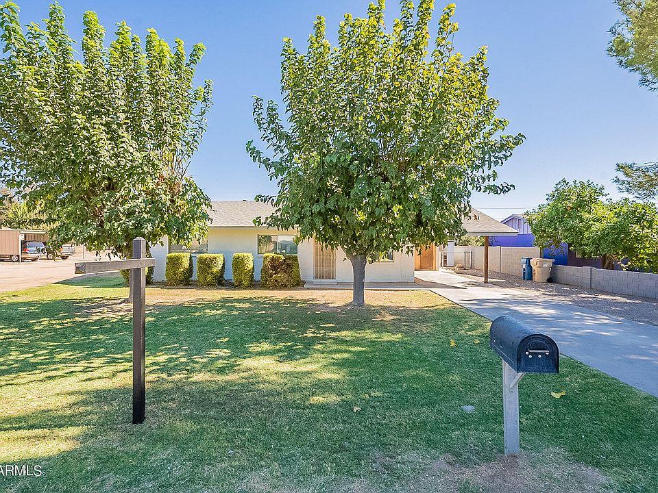 Don't miss out on this great opportunity! This single-level block construction home has 3 bedrooms, 2 bathrooms & NO HOA!! New roof (2023) & new carpet (2023) in the bedrooms. The beautiful grass front yard with mature trees & grass backyard are perfect for entertaining. The large storage shed has plenty of room for all of your hobbies, crafts or tools.